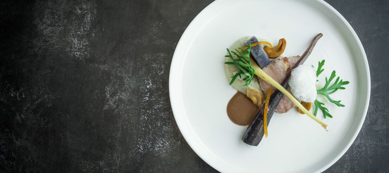 • De pastinaak crème onderop het bord, hierop de longhaas.