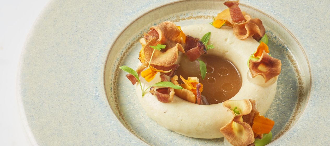 Week de bakkeljauw minstens 12 uur in vers water. Zweet de knoflook en sjalot aan in boter en voeg de bakkeljauw en de room toe. Laat rustig garen, draai glad in de thermoblender met de pastinaakcrème. Breng op smaak en vul af in tulbandmatjes.