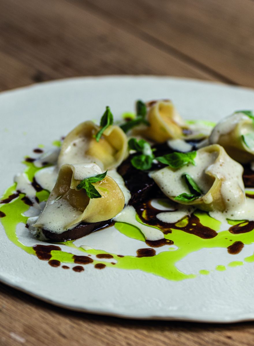 • Voor een mooie vettigheid is het lekker om het gerecht af te toppen met een plakje lardo.