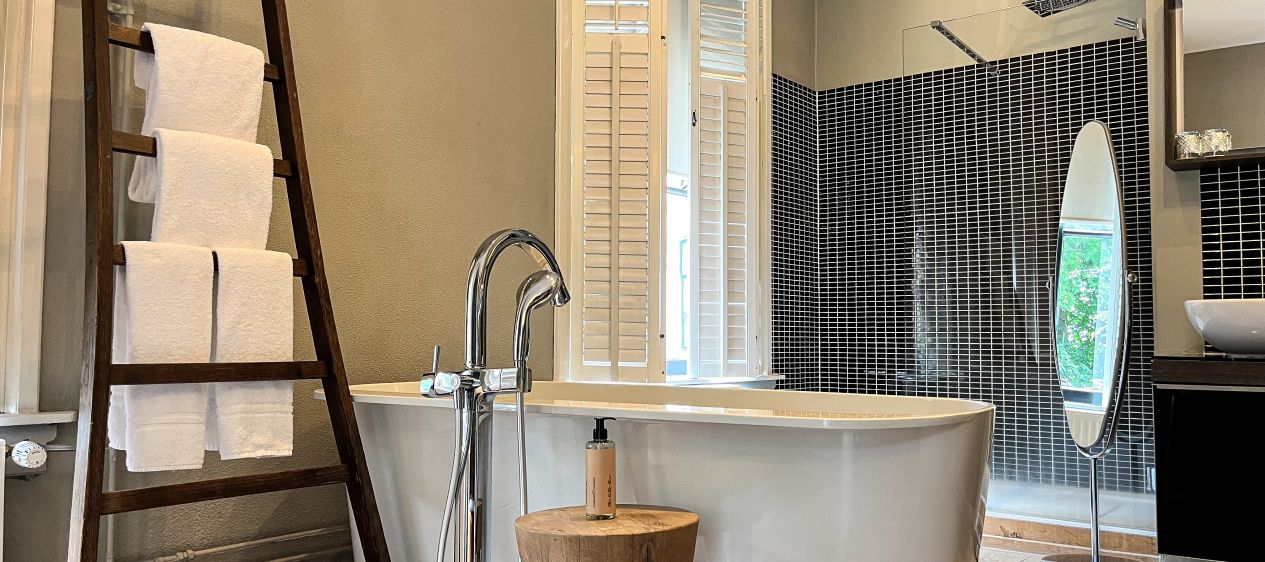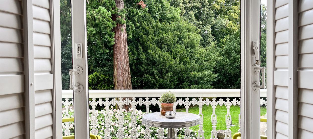 De villa heeft een prachtig terras met uitzicht over de omringende bomen van het arboretum, waarvan sommige meer dan een eeuw oud zijn. U kunt ook genieten van een aperitief of lunch in de toegankelijke bar met een prachtige lichtinval dankzij de hoge ramen. Maakt u zich geen zorgen dat u snel weer naar huis moet, want Villa Ruimzicht beschikt over de meest comfortabele kamers voor een overnachting. Voor extra luxe kiest u voor de 'Waterpretkamers' waar u geniet van een extra grote badkamers met wellnessopties zoals een sauna of stoomdouche.