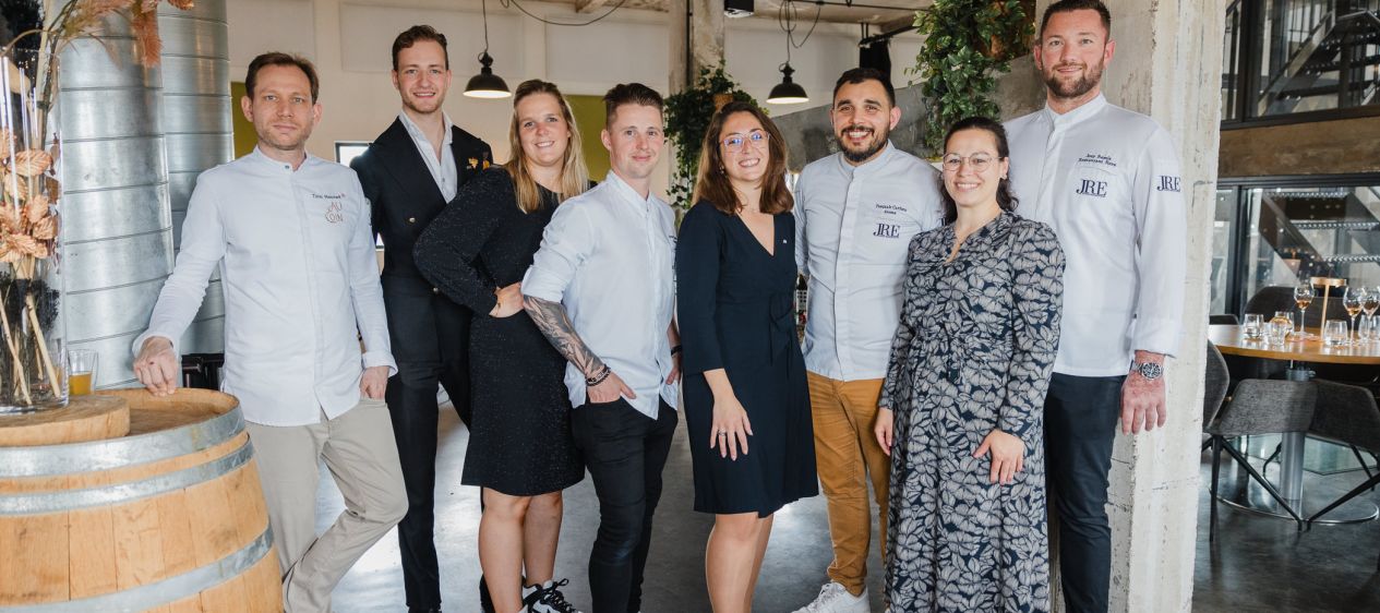 Marko Karelse sloot af met het voorstellen van de 5 nieuwe leden. Met deze nieuwe leden telt JRE-Nederland nu 39 leden. Tijdens deze bijzondere lunch stelden de nieuwe leden zich niet alleen persoonlijk maar ook culinair voor. Iedere gang werd door een van de chefs gekookt. Anfors Imperial, Kwast Wijnkopers, Het Proefstation, Résidence Wijnen en Vinites tekenden voor de wijn- en alcoholvrije combinaties. Het tafelwater van S.Pellegrino & Acqua Panna werd verzorgd door Kepler15. Na de lunch was er nog de afsluiting met illy koffie en een borrel met Swinckels bier en cocktail van FeverTree en Maxxium op het 32 meter hoge dakterras van de voormalige graansilo op de Noordkade.